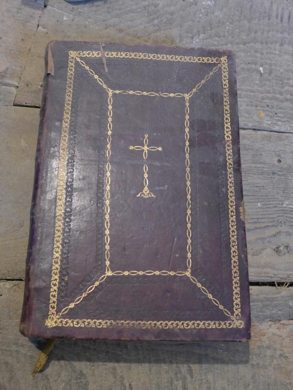 Libro impreso con cubierta de cuero adornada con cenefas doradas. Con grabado en su frontispicio y en algunas de sus páginas interiores.