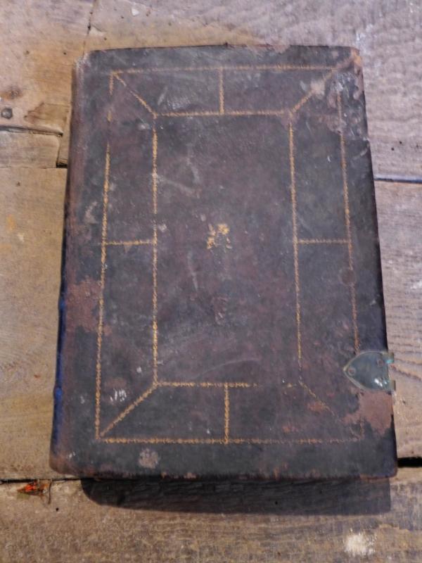 Libro impreso con cubierta de cuero y cierres metálicos. Con grabado en su frontispicio.