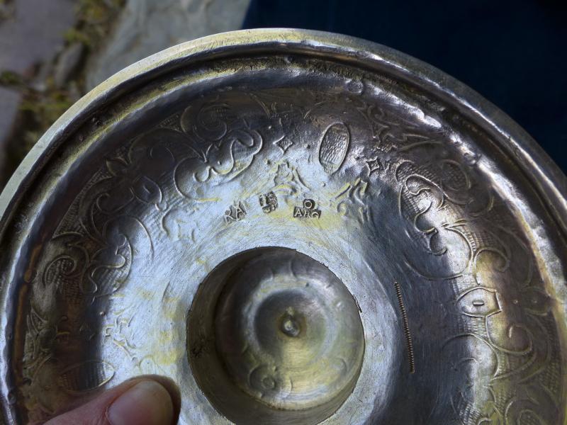 El cáliz tiene tres punzones y burilada en zigzag. El de localidad está frustro y en los de autoría y contraste se lee: [...]RA y º/ARG