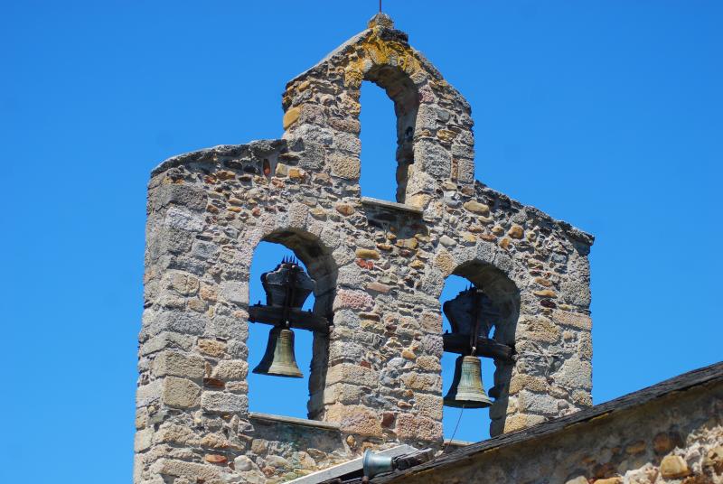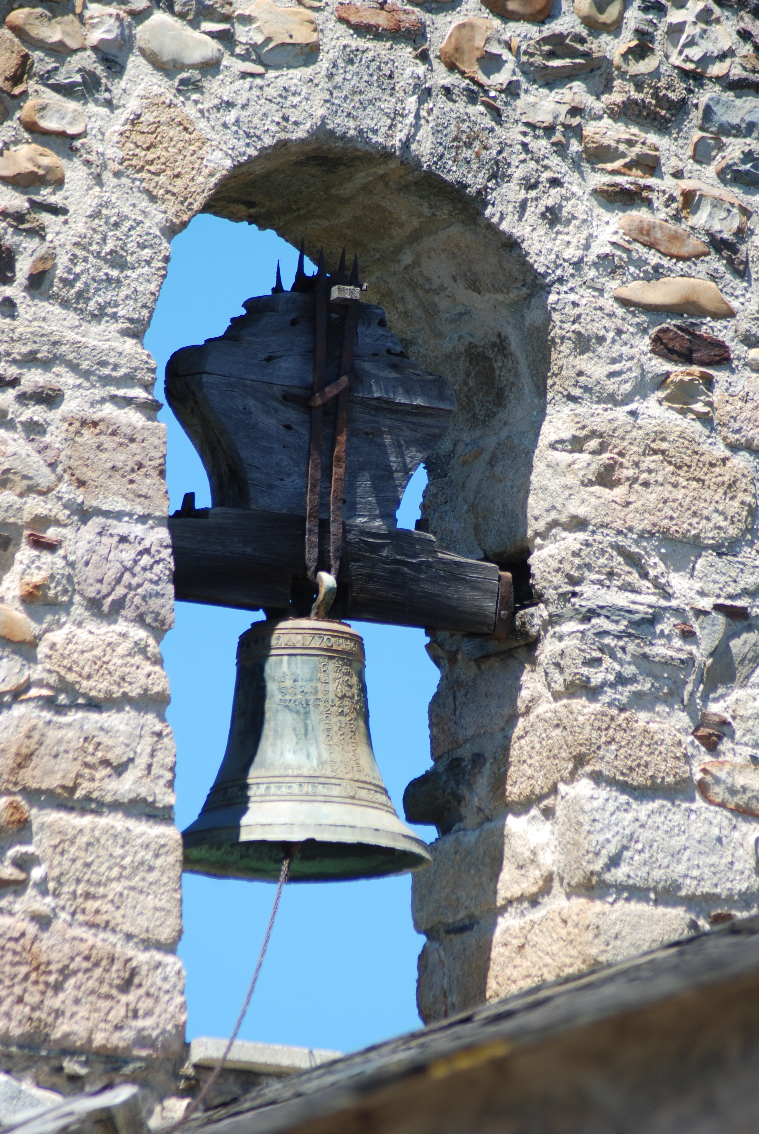 Campana de perfil esquilonado. Su tercio contiene la inscripción IHS (no podemos leer el resto ) A[ño] 1770, enmarcada entre dos parejas de cordones.