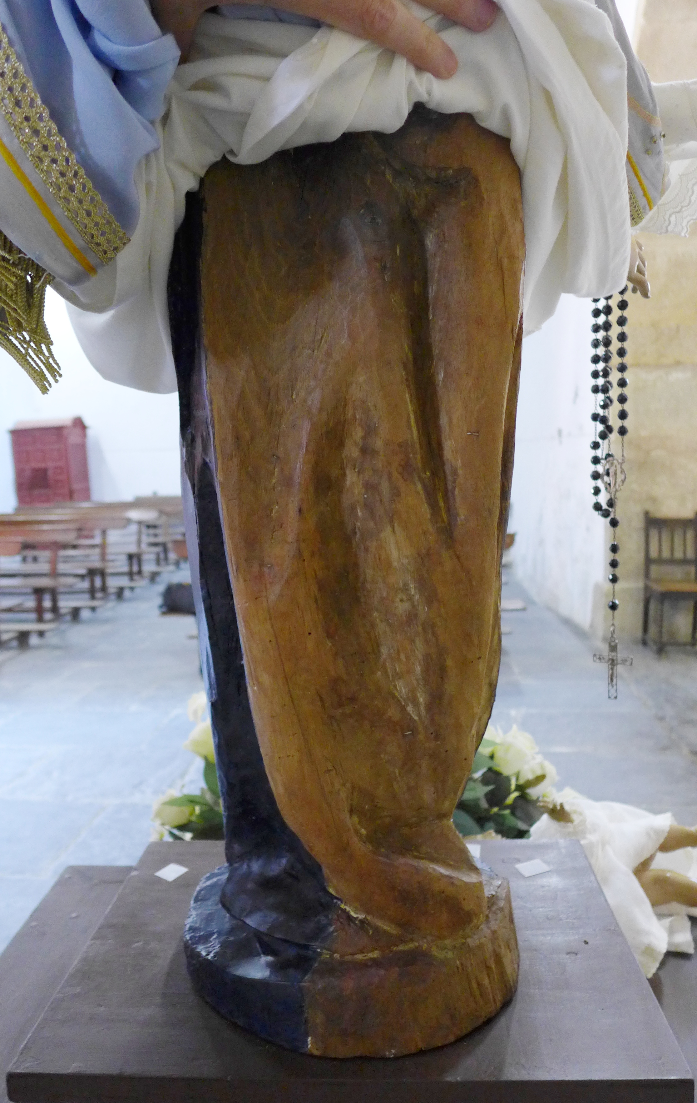 La parte inferior trasera de la imagen se encuentra retallada y sin policromar.