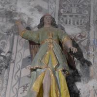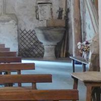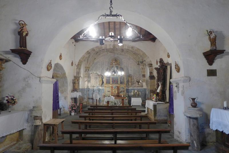 Edificio de una sola nave, con cabecera de planta recta y espadaña a los pies. En su interior se compone de una cabecera que se separa de la nave mediante un arco de gloria de medio punto (deformado y con alguna cuña) cuya rosca exhibe la sillería. La nave se articula en dos tramos divididos por un arco fajón de medio punto, enlucido.