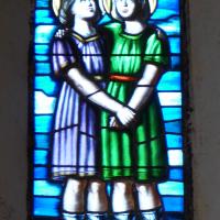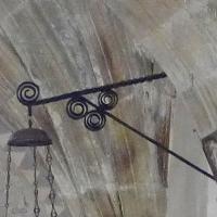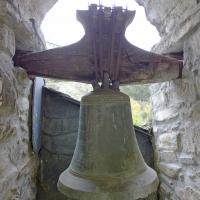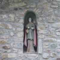 La espadaña dispone de dos troneras y remata en agudo piñón, como es costumbre en la tradición constructiva de la región.