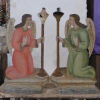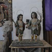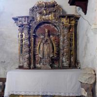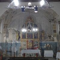 Conserva en el ábside el retablo mayor (Santos Justo y Pastor). En el muro sur del presbiterio, el retablo de la Virgen del Rosario. En el primer tramo de la nave del muro norte, el retablo de la Inmaculada, y en la capilla septentrional, el retablo del Santo Cristo.