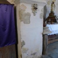Abre al norte del primer tramo de la nave una capilla de patronato desconocido (a pesar de su escudo), presidida por el retablo del Santo Cristo (situado sobre el hastial norte), y al sur de dicho tramo una sacristía, anexa a la cabecera.