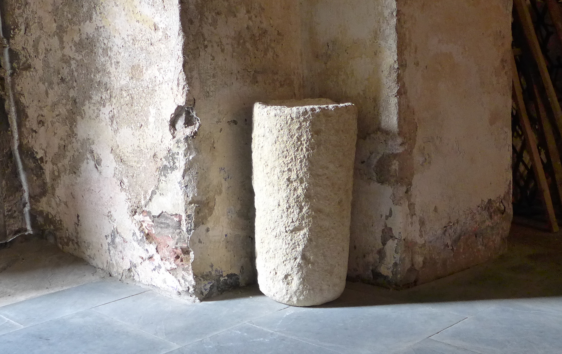 Tambor de fuste de columna, con vaciado hemiesférico en la parte superior para contener el líquido