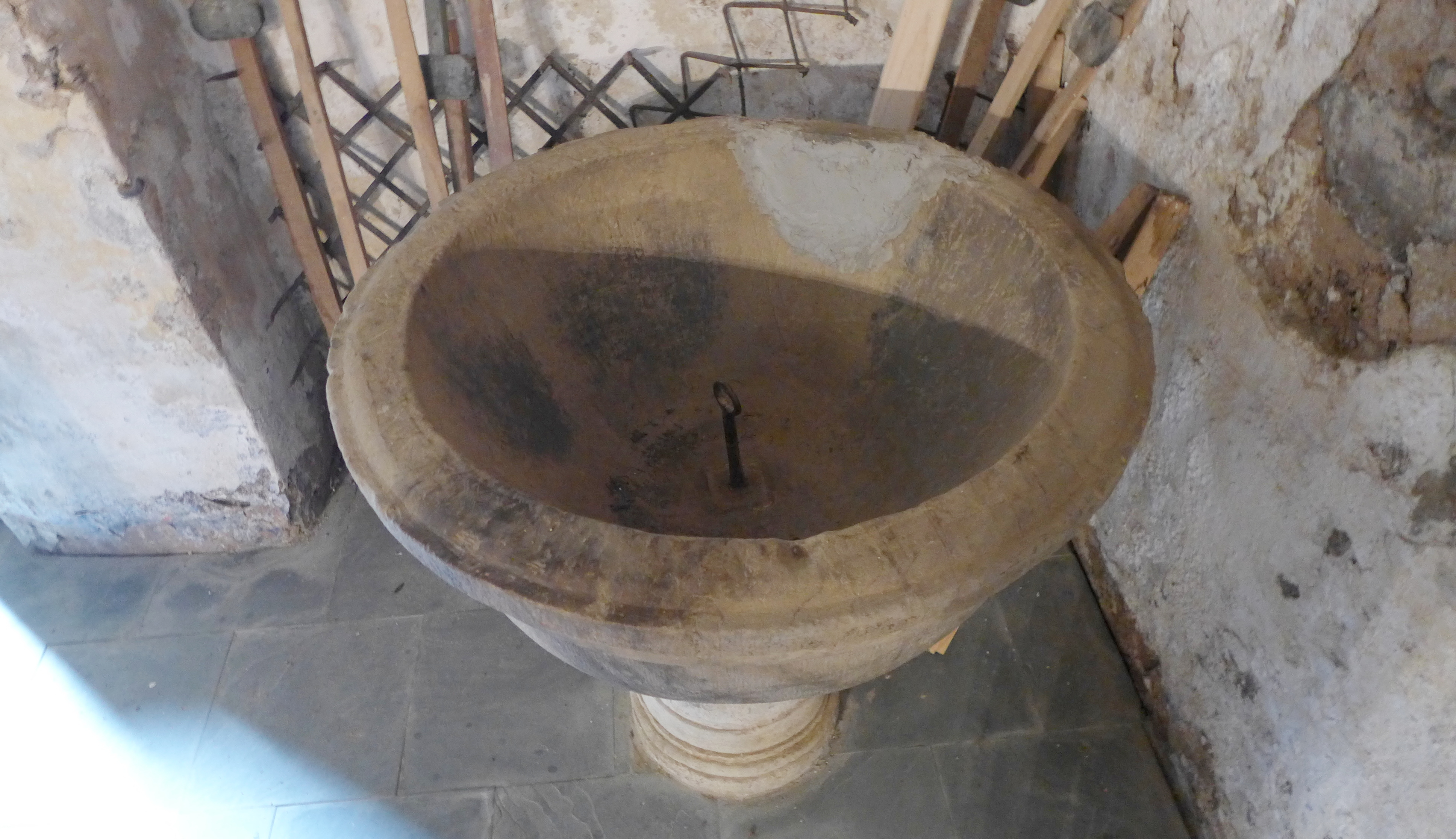 Objeto compuesto por pie y copa, ambos con molduras muy sencillas .