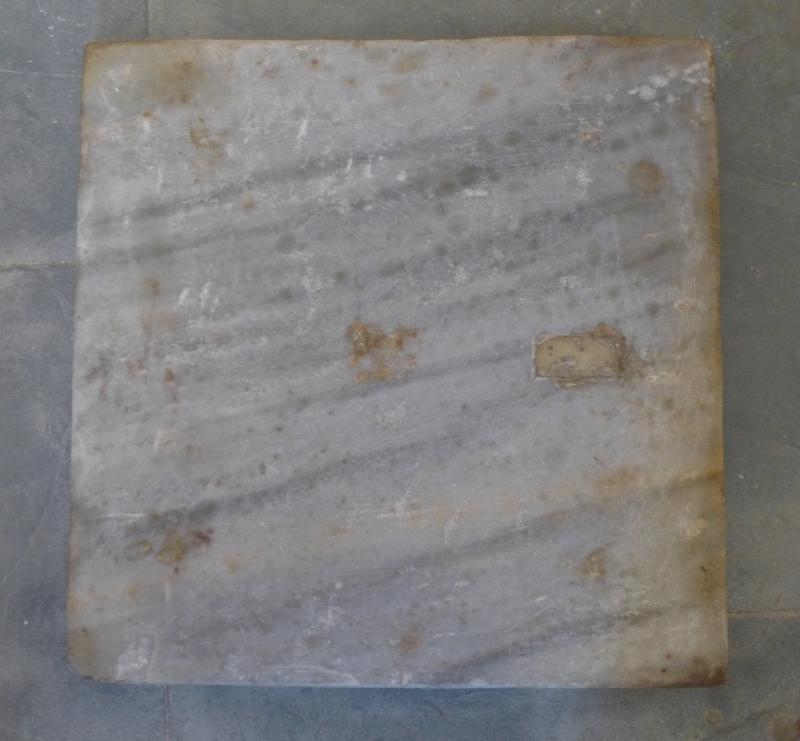 Pieza cuadrada de mármol. Conserva el sepulcro