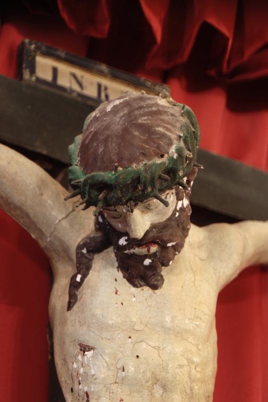La cruz es la original. En la parte superior ostenta el rotulus: INRI.