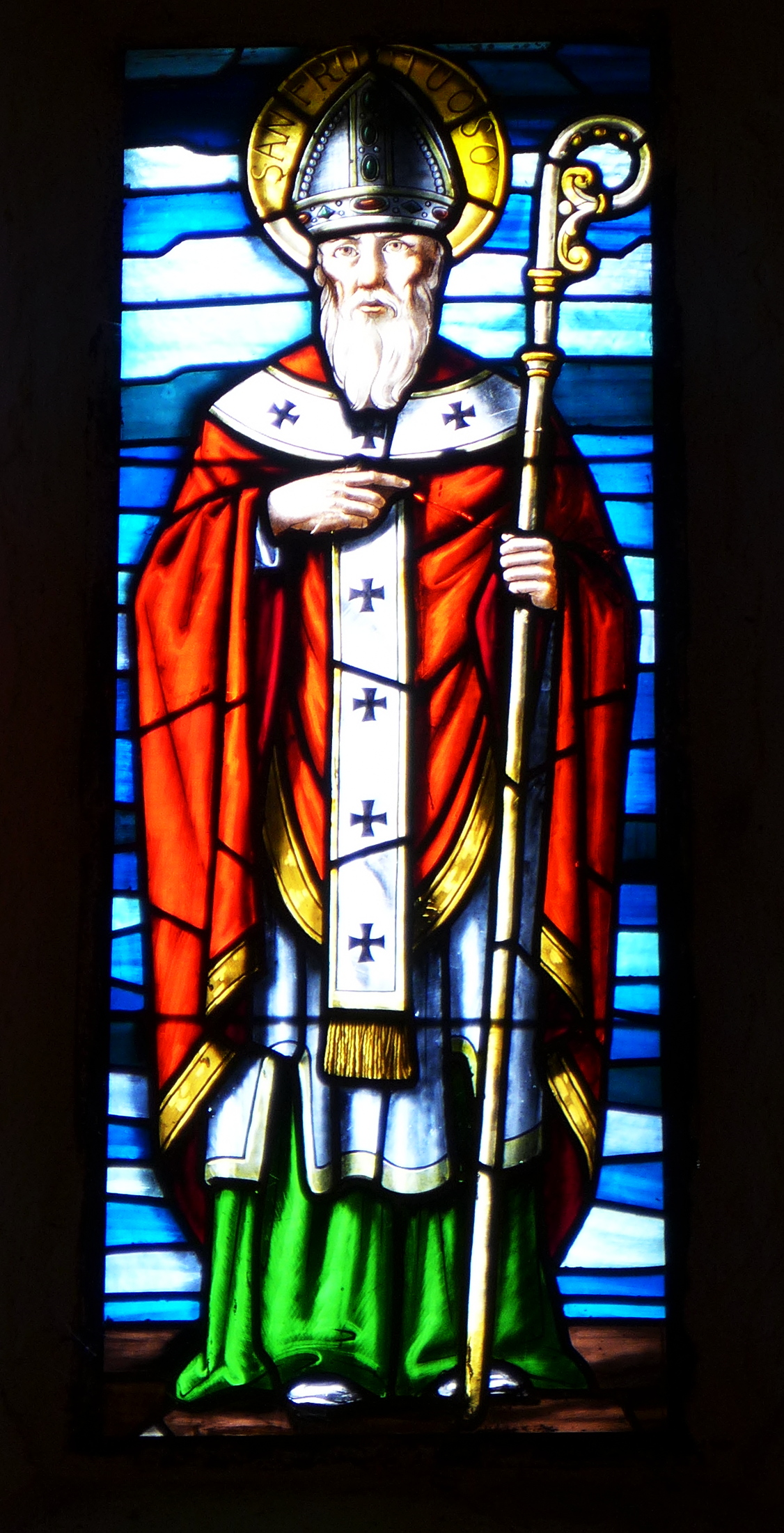Representa san Fructuoso de pie, revestido con el atuendo episcopal (mitra, báculo y palio. En el nimbo dorado se inscribe su identificación.
