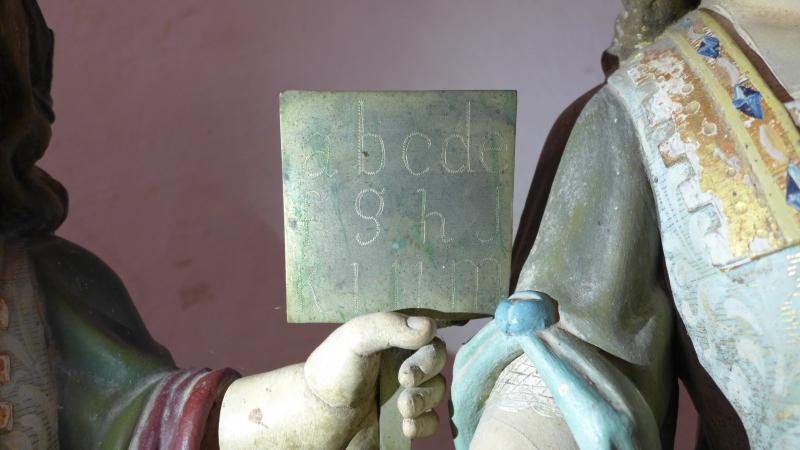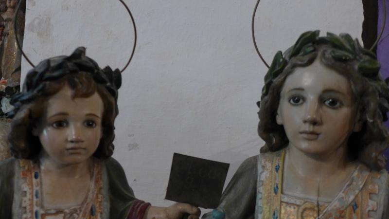 Los utensilios que portan ambos santos son de latón