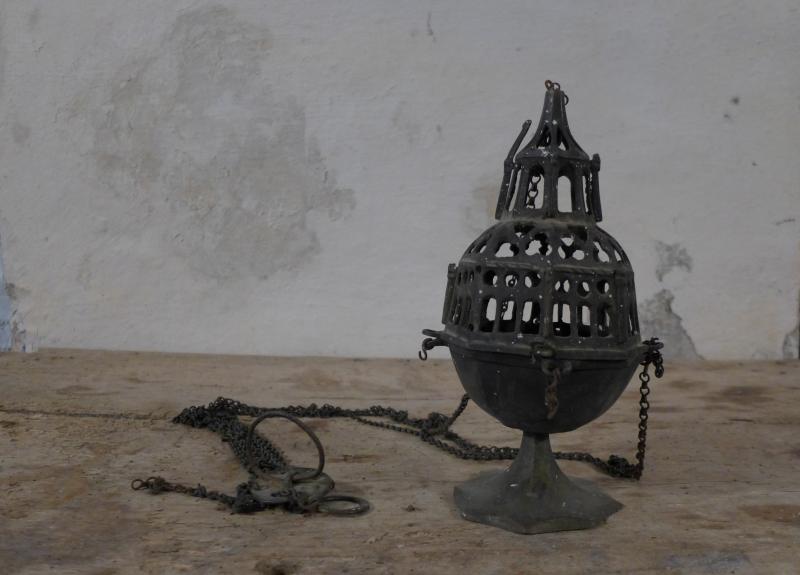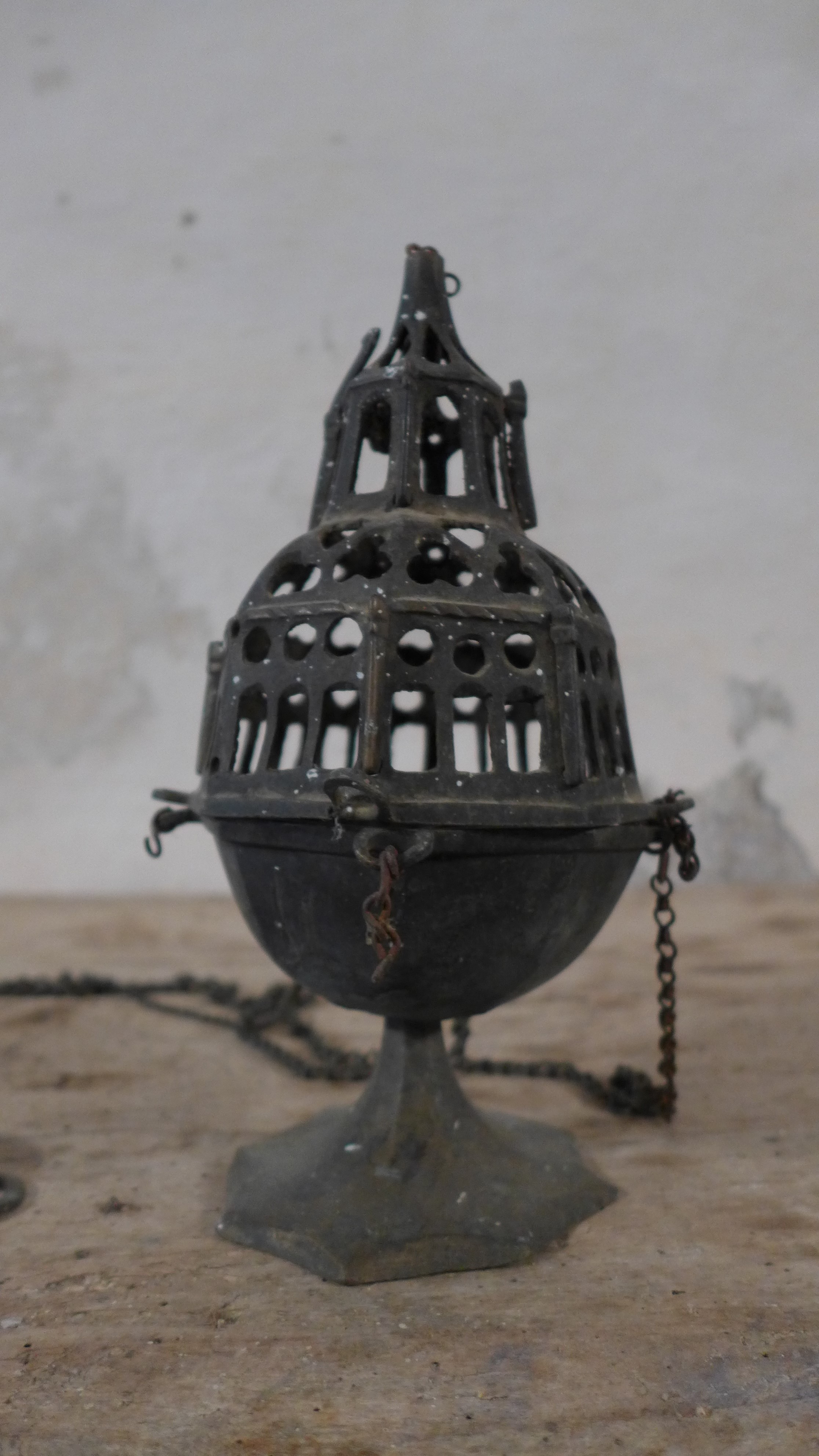 Incensario neogótico que en algún momento se ha tomado como pieza medieval. Posee peana poligonal y elevada de marcadas aristas. Su brasero, hemisférico, marca ligeramente las líneas de su base rechazando cualquier otro tipo de ornamentación. Mientras, el cuerpo de humo es una estructura más compleja, con una primera sección hemisférica pero algo facetada y un remate de tendencia troncocónica compuesta de dos alturas. Todo este cuerpo se trabajó a base de labor de calado, con arquillos círculos y formas lobuladas.