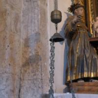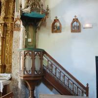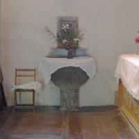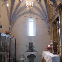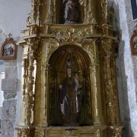 Al interior se aprecia perfectamente su estructura básica de iglesia de nave única cubierta con armadura de madera, capilla mayor semicircular cubierta con bóveda y capilla anexa frente a la puerta de acceso. Conserva tres retablos barrocos, el mayor y dos colaterales.