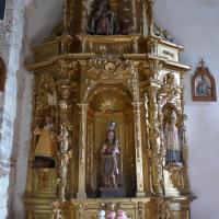 Edificio de origen románico, adornado en su interior de pinturas murales góticas. En su altar está enterrado Lope García de Castro, Virrey del Perú y natural de esta villa. Destaca por la riqueza de sus bienes muebles y por albergar la talla de la Guianina.