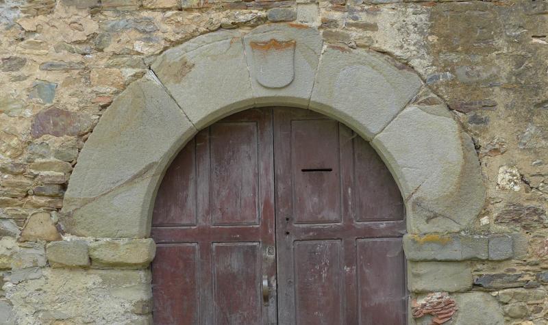 Escudo con tres puntas en el jefe y redondeado en la punta.
