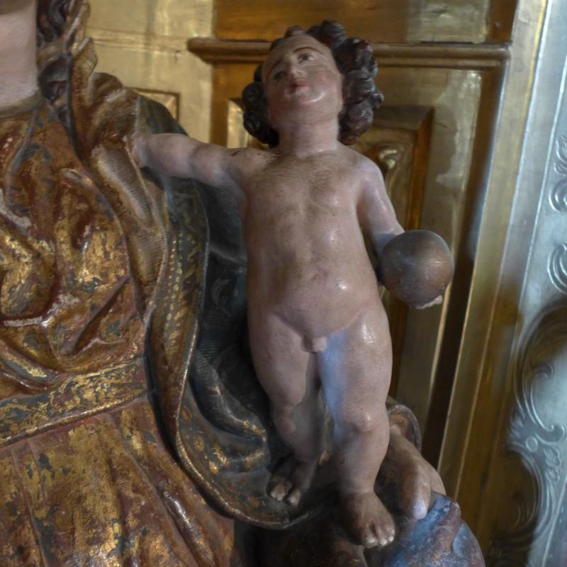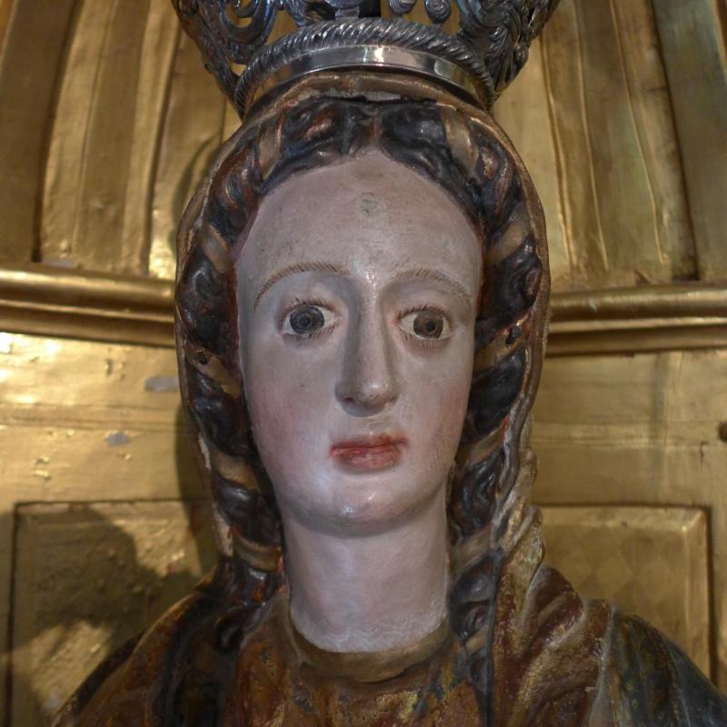 Ennoblece la imagen una trabajada y lustrosa policromía.
