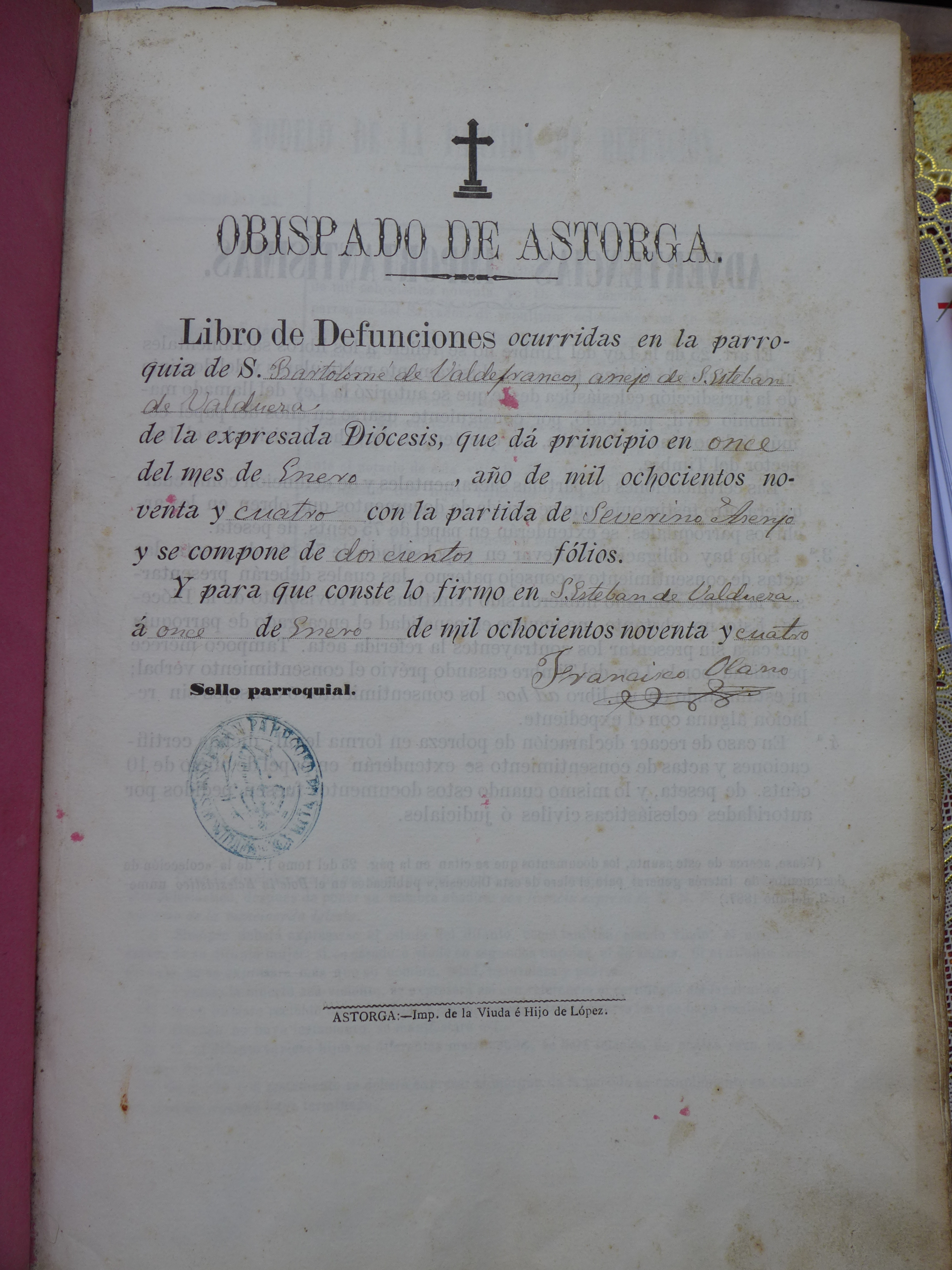 Libro de difuntos de Valdefrancos (1894-hoy)