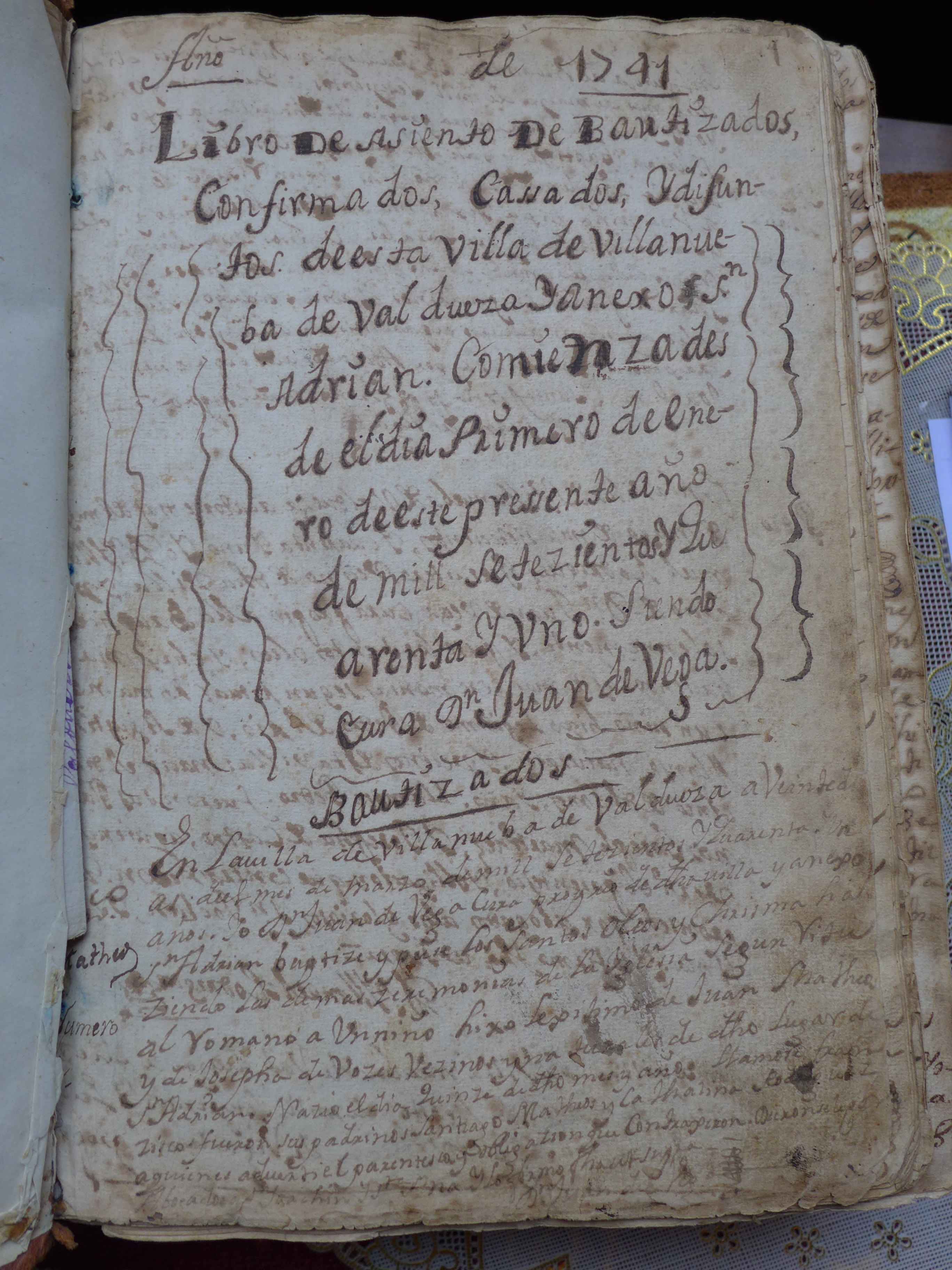 Libro de bautizados, casados y difuntos de Villanueva de Valdueza