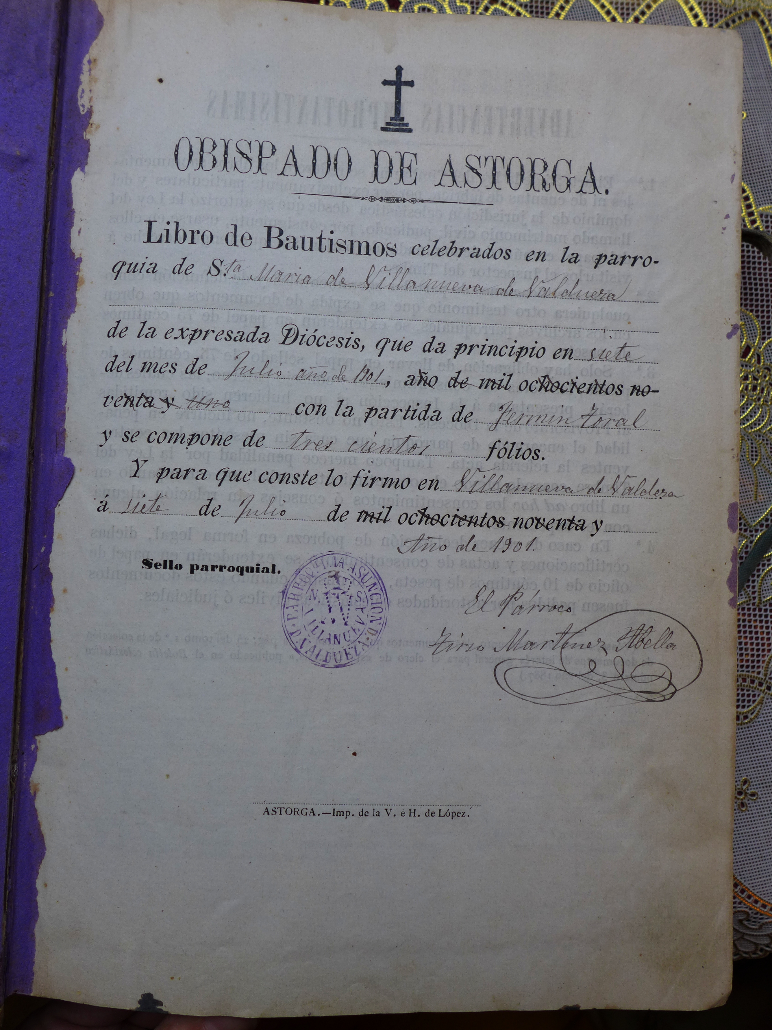 Libro de bautizados de Villanueva de Valdueza (1901-1936)