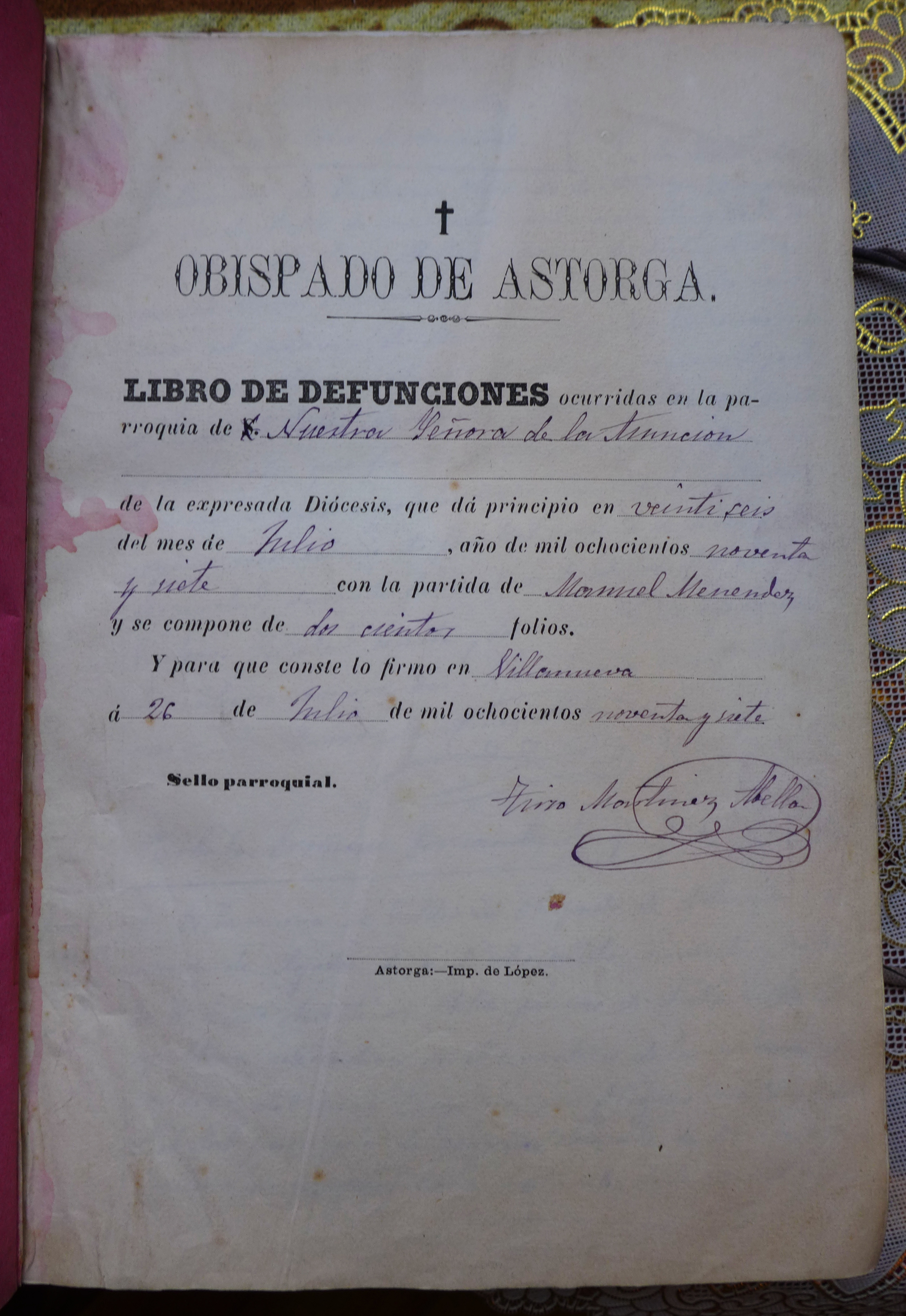 Libro de difuntos de Villanueva de Valdueza