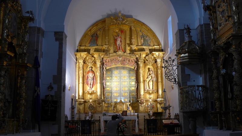 Frente a esta sobriedad desborda el conjunto mobiliario, una soberbia colección de retablos barrocos y rococós, próximos en cronología y ricos en iconografía y tipología. Especialmente relevante es el de la capilla mayor, a modo de retablo transparente y donde se ubica la imagen titular del templo.