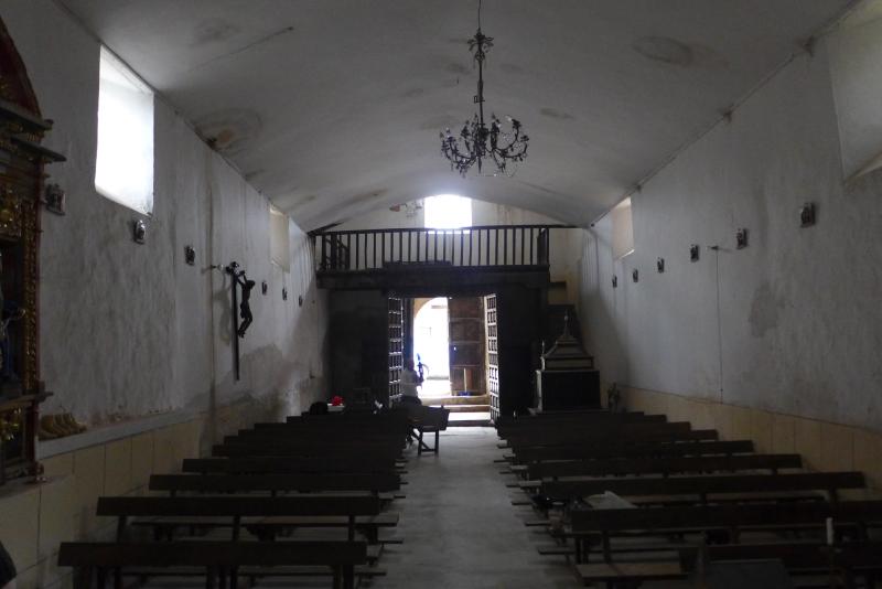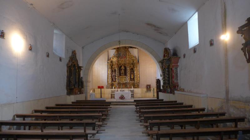 El sobrio interior, cubierto a dos aguas y con techumbre de yeso en la nave y con armadura de madera en la cabecera, hermana bien con el exterior. A pesar de ello, conserva un conjunto retablístico de interés, con tres piezas de época barroca, en la que el mayor descolla por su buena hechura y por la inclusión en su imaginería de imágenes de cronología anterior que quizá nos estén hablándo de un retablo anterior o incluso de un edificio primitivo.