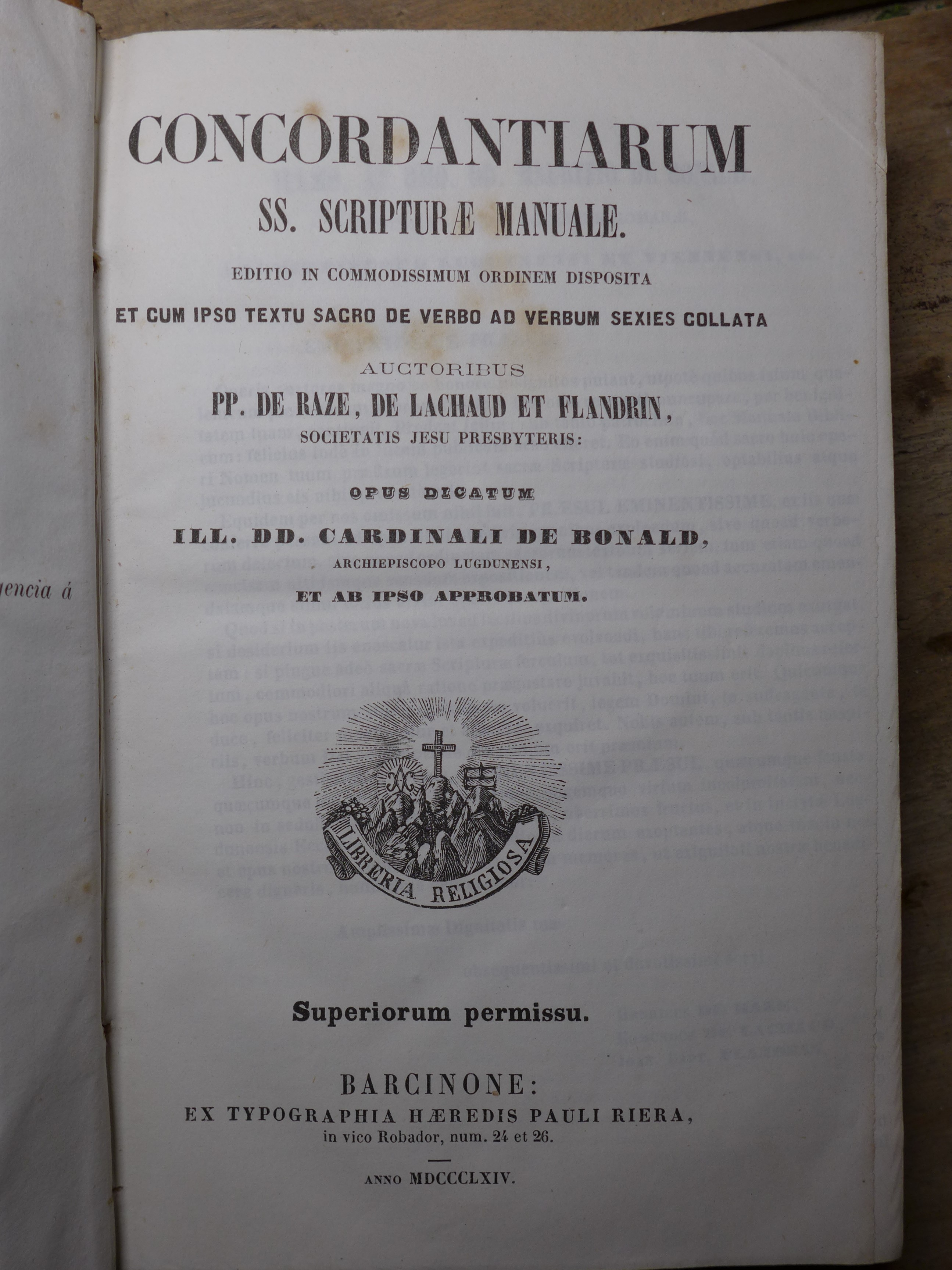 Auctoribus PP. de Raze, de Lachaud et Flandrin, societatis Jesu presbiteris. Opus dicatum Ill. DD. Cardinali de Bonald, archiepiscopo lugdunensi