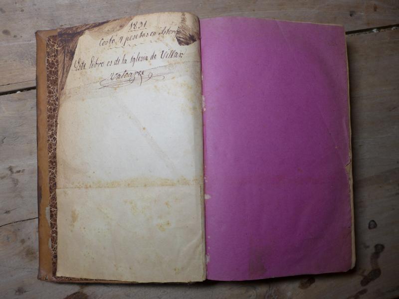 Inscripción interior: 1891. Costó 7 pesetas en Astorga. Este libro es de la iglesia de Villar.