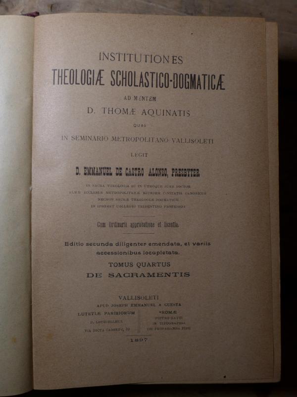 Libro impreso: Institutiones Theologiae Scholastico-Dogmaticae