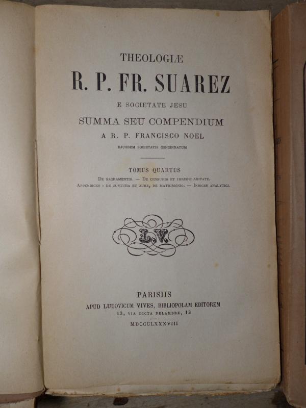 Libro impreso: Theologiae R. P. FR. Suarez IV