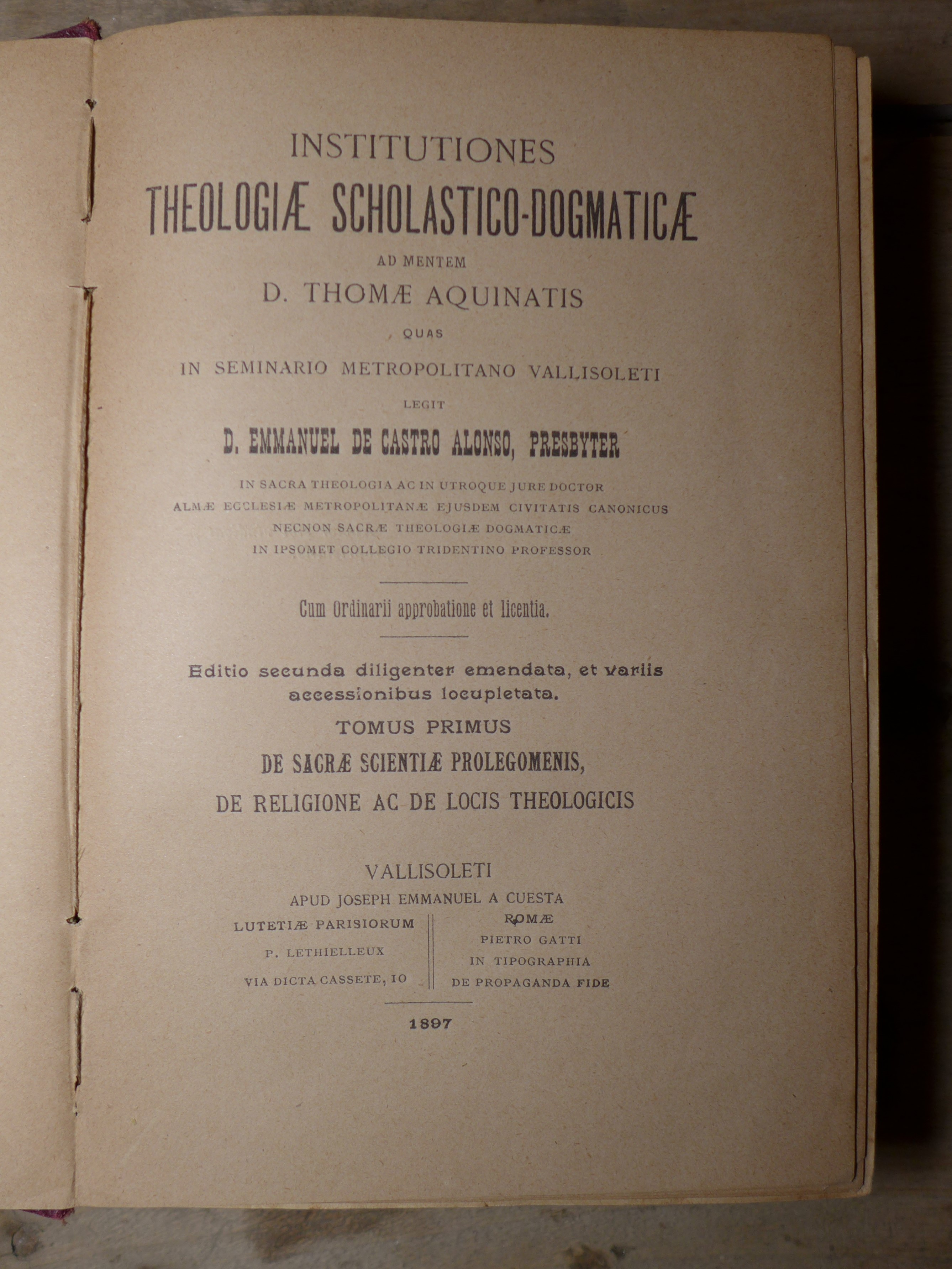 Libro impreso: Theologiae Scholastico-Dogmaticae I
