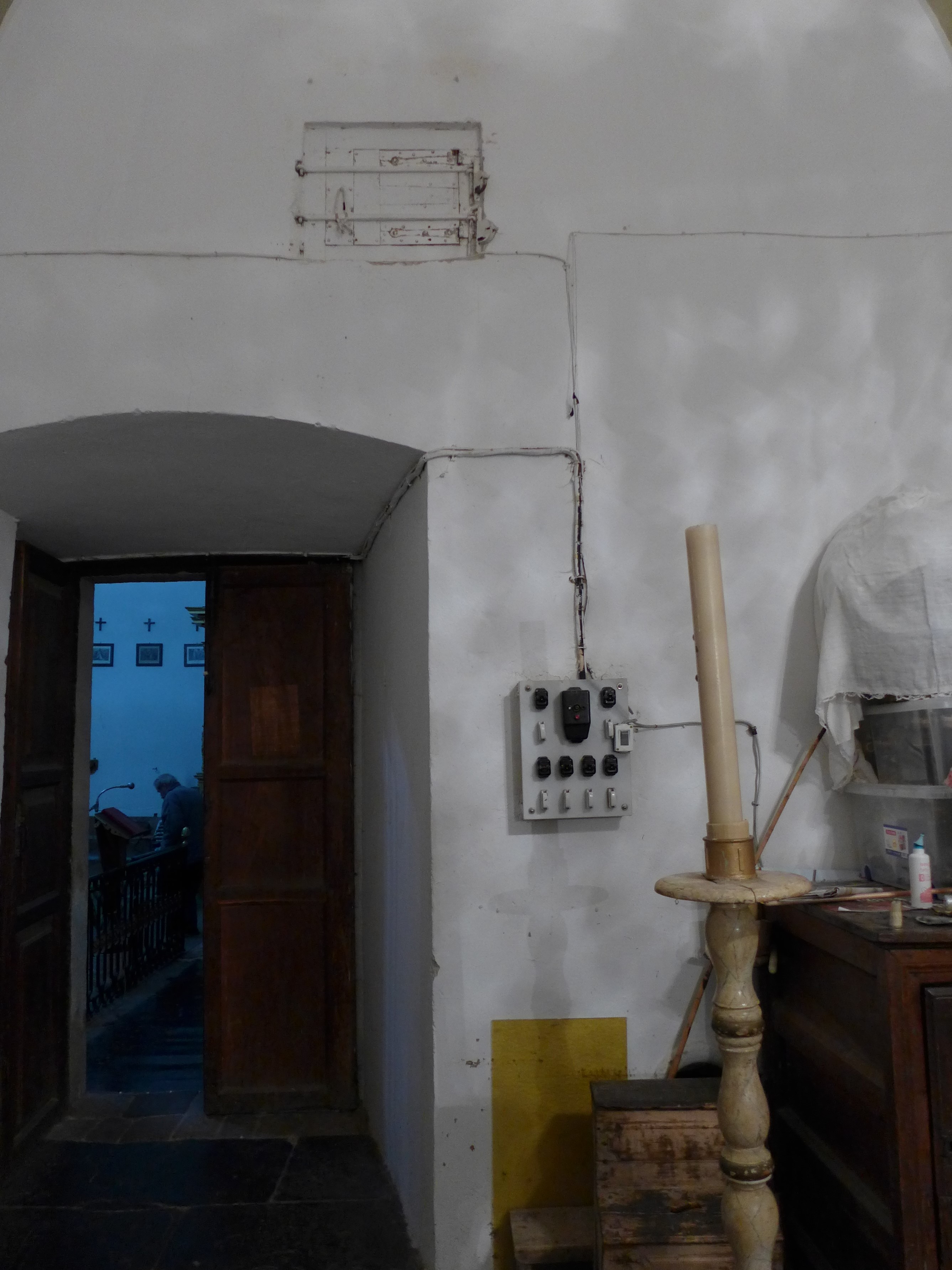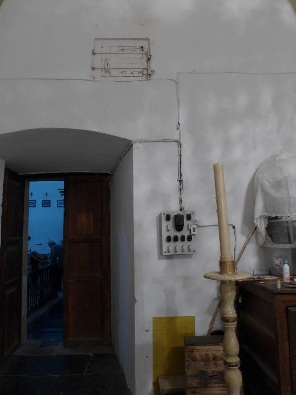 Pequeño armario de forma rectangular encastrado en el muro norte de la sacristía. Hoy se encuentra vacío, pero originalmente cumplió su función de pequeño archivo parroquial.