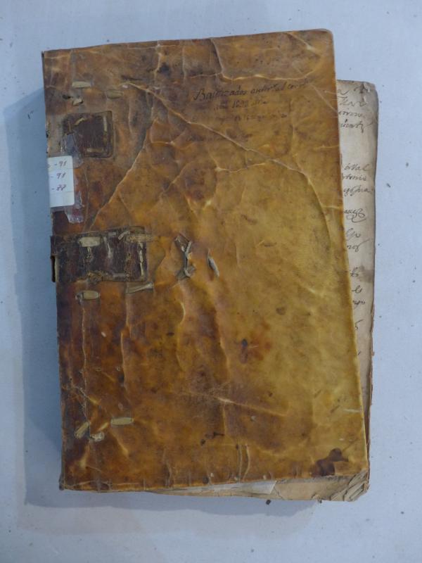 Caja con libros de Bautizados, Casados y Difuntos