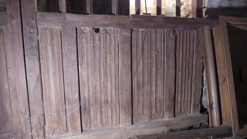 La parte posterior de los tableros que conforman el zócalo tienen una sencilla decoración longitudinal de gubia.