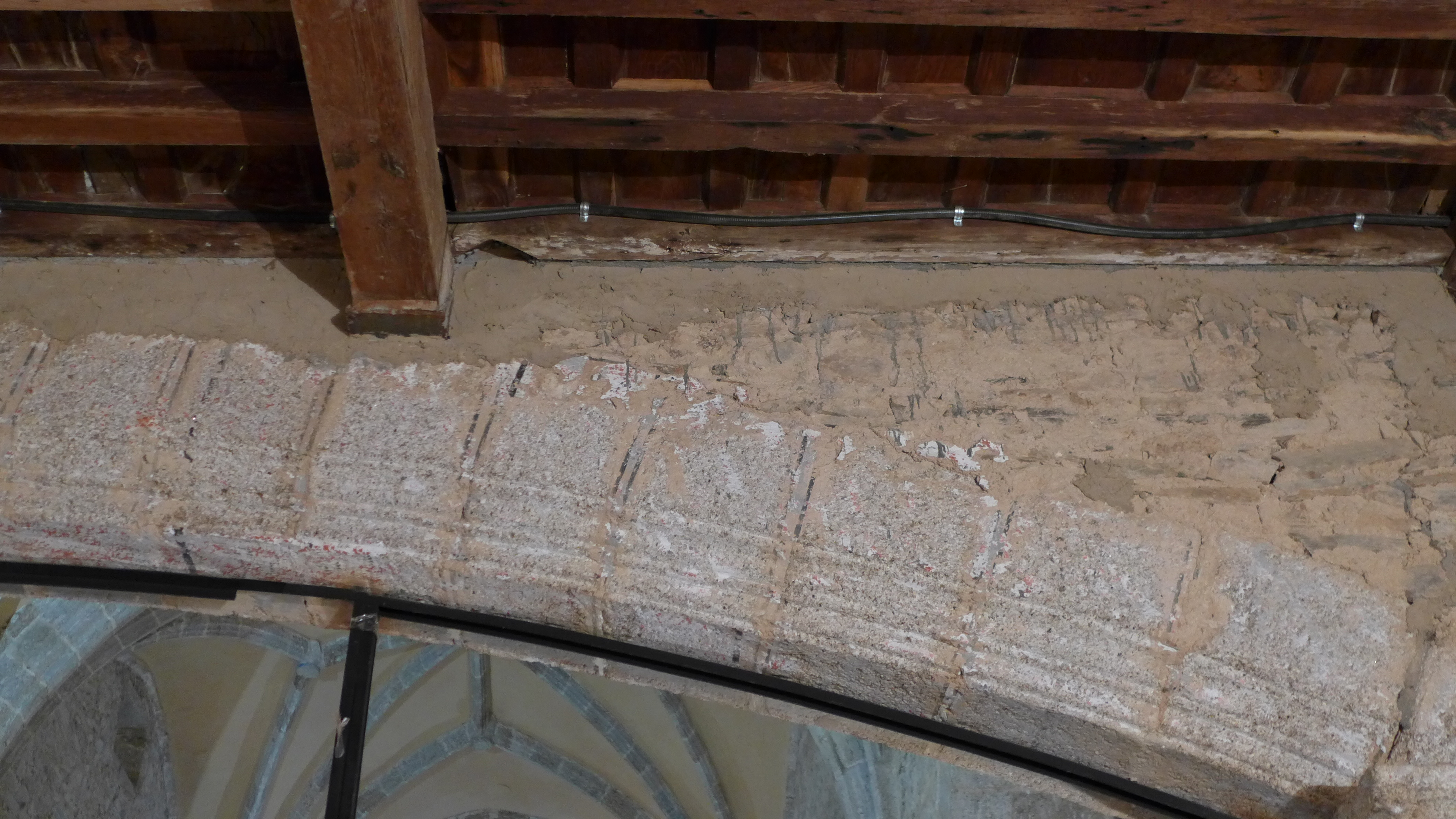 Se conservan a duras penas estos fragmentos descritos, perdida la decoración pintada similar del resto del edificio (salvo en la bóveda de la capilla mayor)