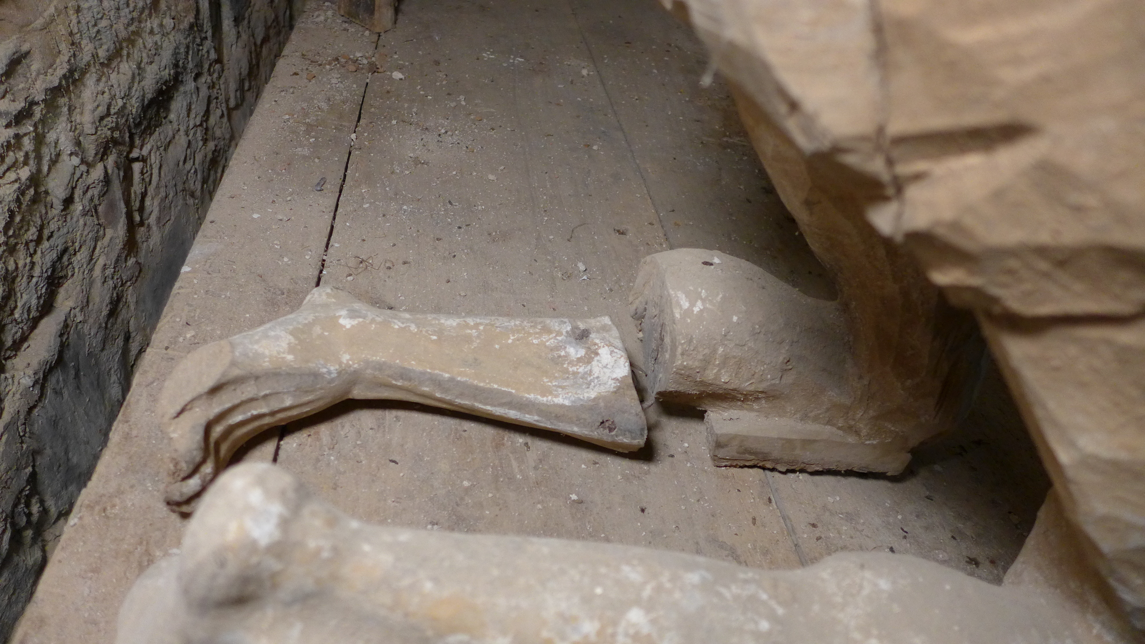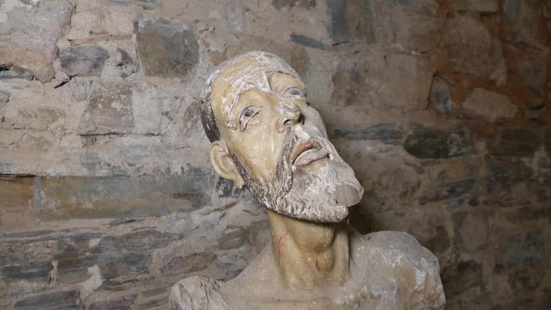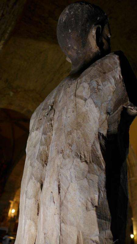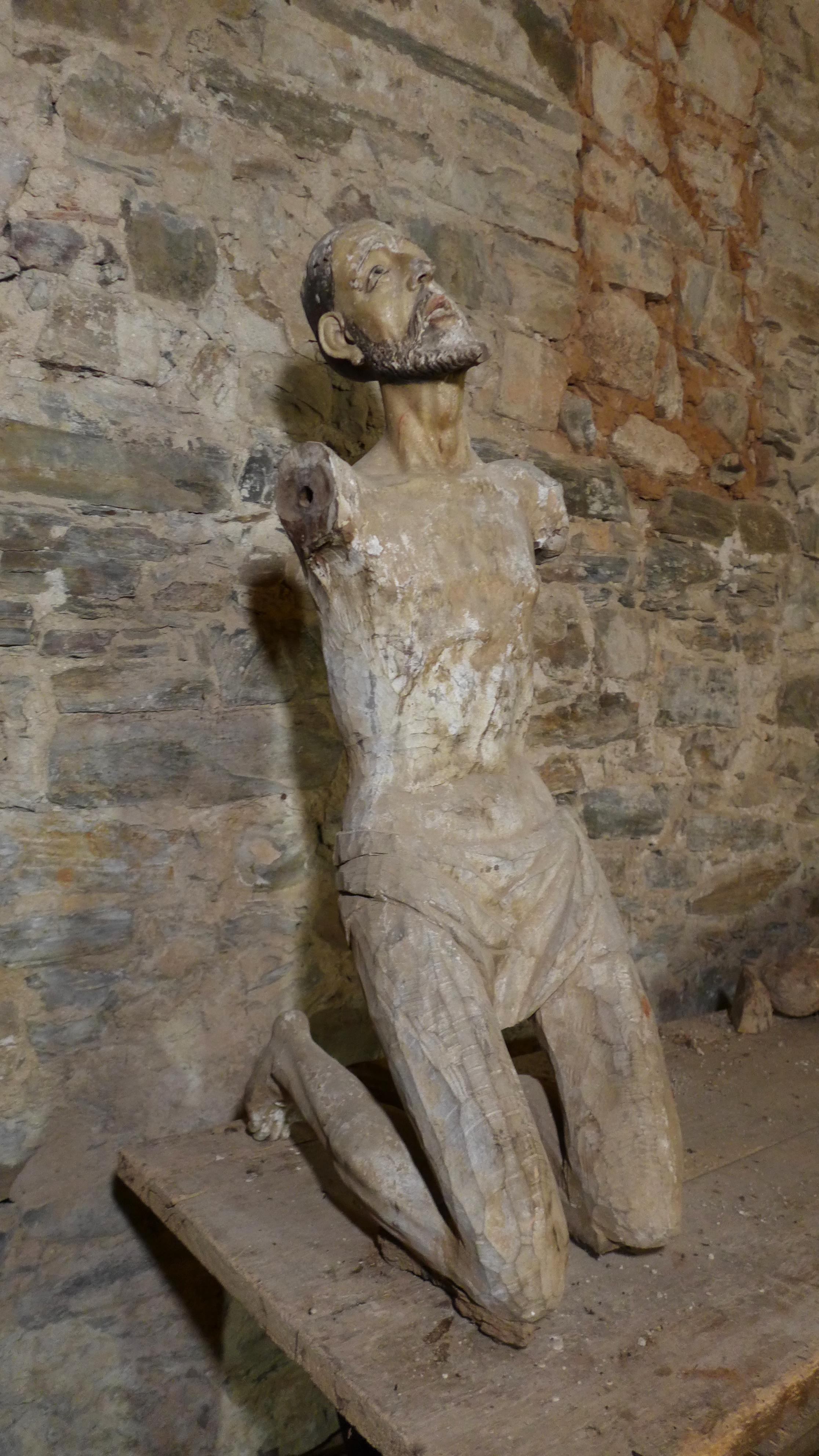 Ha perdido los dos brazos, tiene la pierna izquierda suelta y ha perdido prácticamente toda la policromía