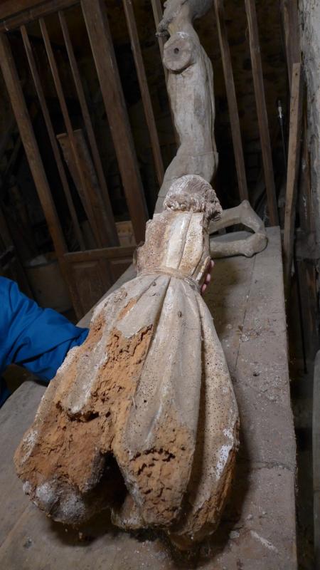 Pensamos que pudiera pertenecer a un San José al que le falta el Niño, si bien los pliegues de la base permiten descartar esta hipótesis.