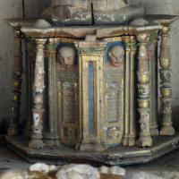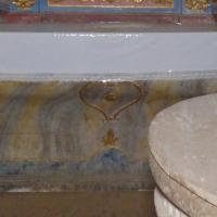 Todo el conjunto se policromó en los habituales tonos de la época, rojos, verdosos y azules, con una sobreabundancia de dorados para los motivos ornamentales.