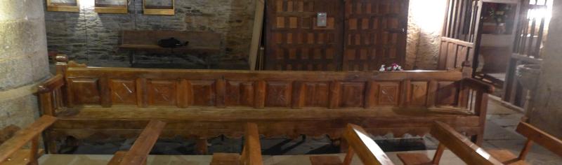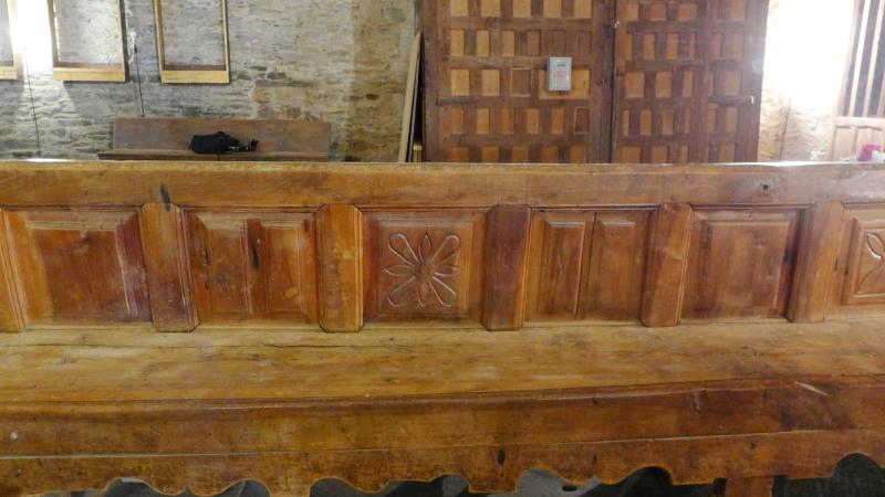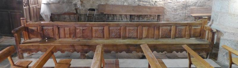 Los respaldos se adornan con once tableros, algunos de ellos con motivos geométricos o florales incisos, otros lisos o simplemente divididos en dos partes.