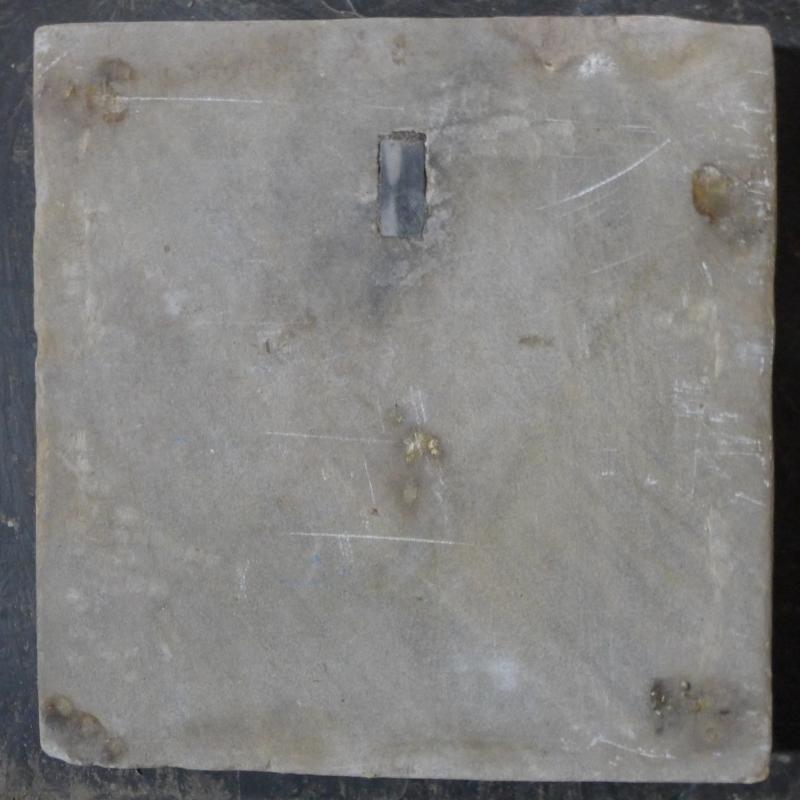 El sepulcro está tapado con un trozo de mármol rectangular de distinta naturaleza al mármol del ara