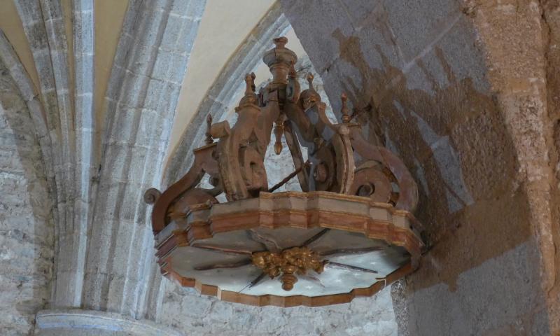 El techo del tornavoz muestra, sobre un golpe de talla dorado en su centro, del que parten ocho rayos flamígeros, de talla también.