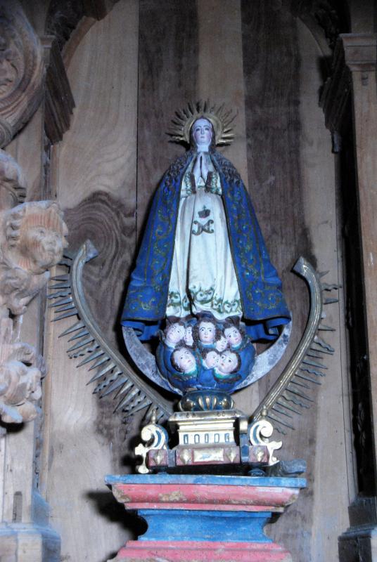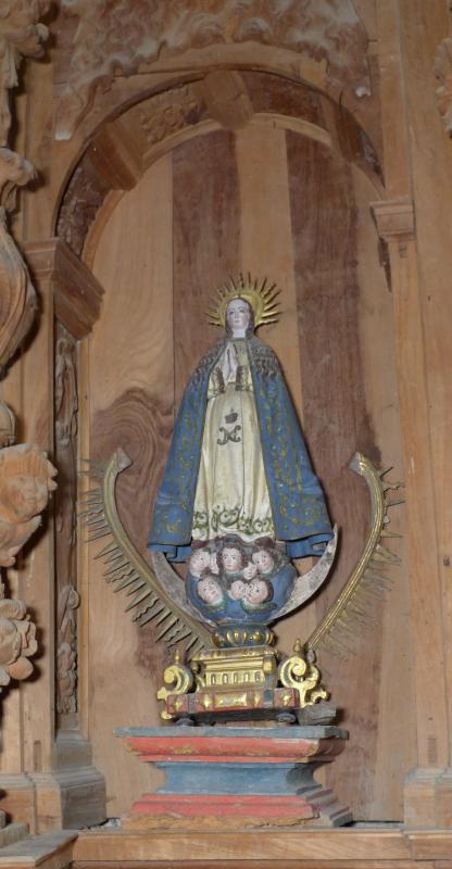 Escultura de bulto redondo de la Virgen Inmaculada. Su perfil triangular, la actitud orante, casi hierática, y el tratamiento de los pliegues transversales en la parte inferior del manto (que simétricamente baja desde el cuello) le hace deudora de los modelos de Gregorio Fernández, así como los plegados metálicos, o la disposición del cabello, largo, simétrico y con pronunciadas ondulaciones.