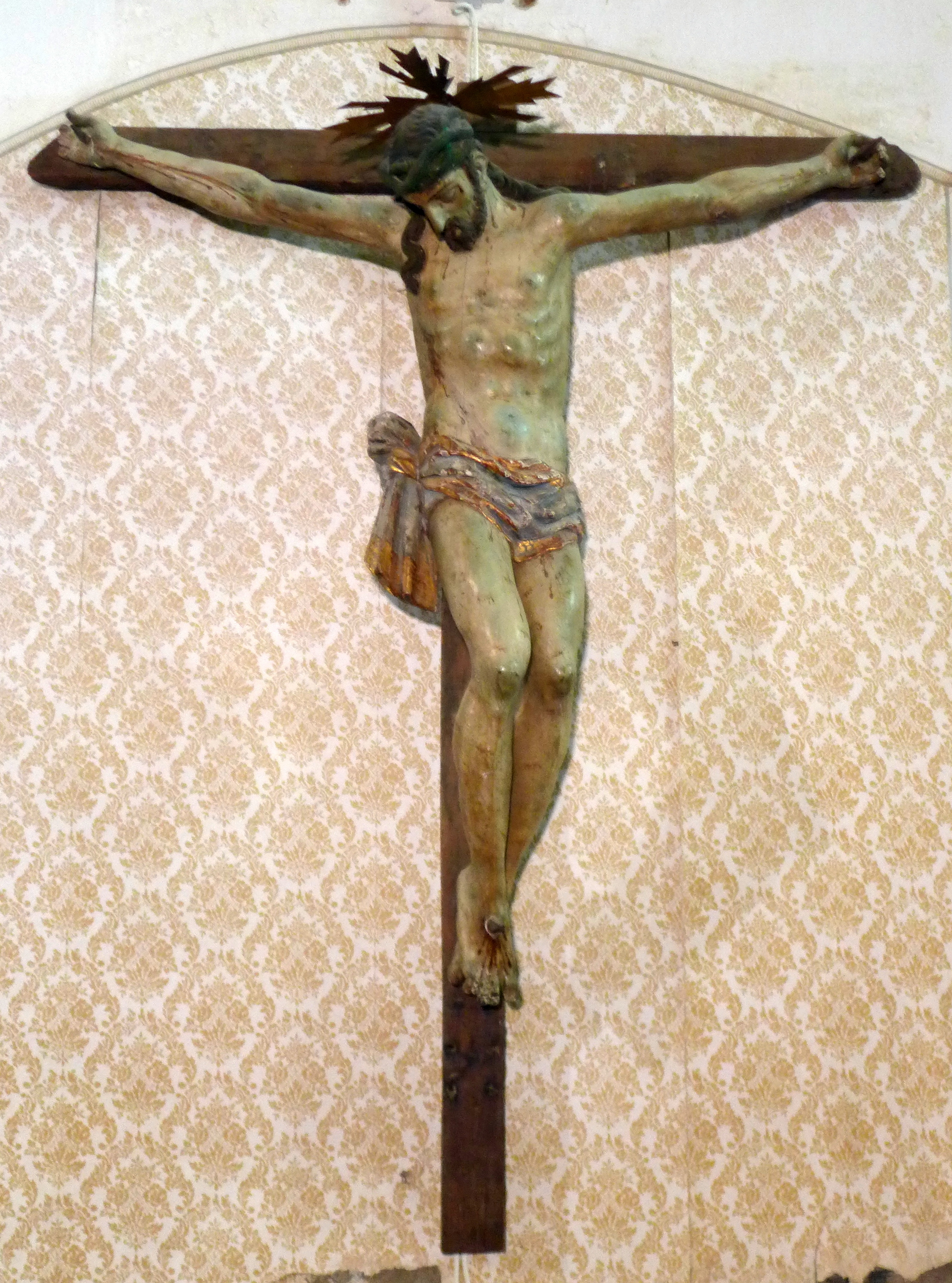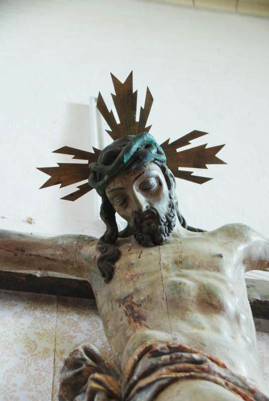 Imagen de gran calidad, que ha asumido los valores de la escultura renacentista. Crucificado de tres clavos de suave anatomía, sus brazos se disponen prácticamente horizontales sobre la cruz. El nudo del corto paño de pureza se dispone a su derecha.