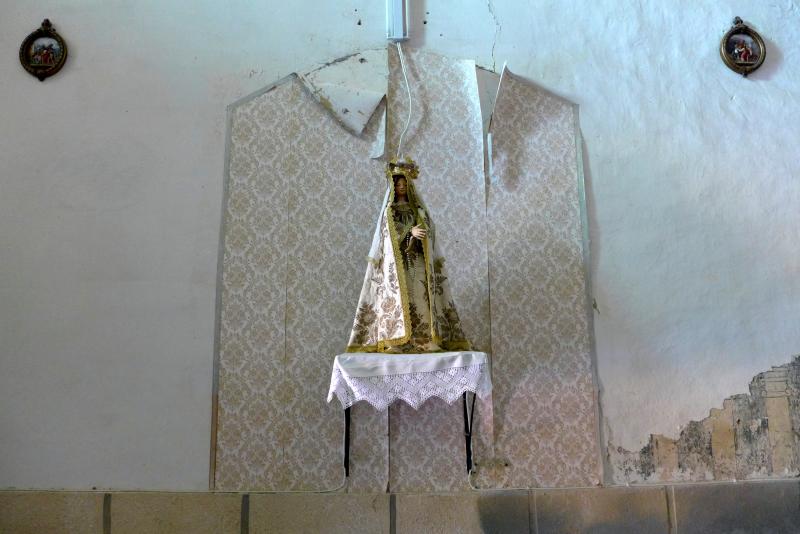Es difícil saber si le faltan las piernas, y por ello se han suplementado con otra tosca peana, aunque todo apunta a ello.
