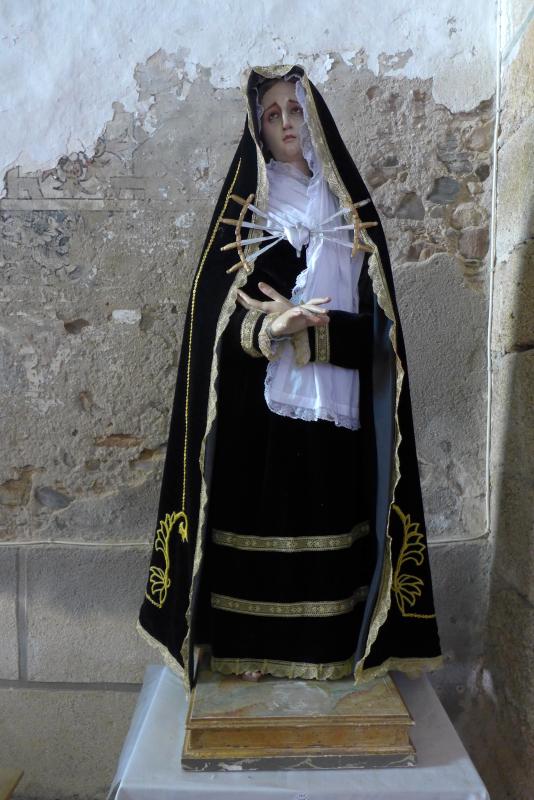 Hay una inscripción pintada, parcialmente conservada por pérdida de soporte, en la peana, entre los pies de la imagen. Se llega a leer: J? Fiol / S. Severo 2...