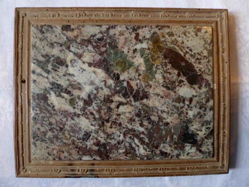 Mármol de forma rectangular de tipo travertino, con fuerte contraste del veteado entre negros y blancos.