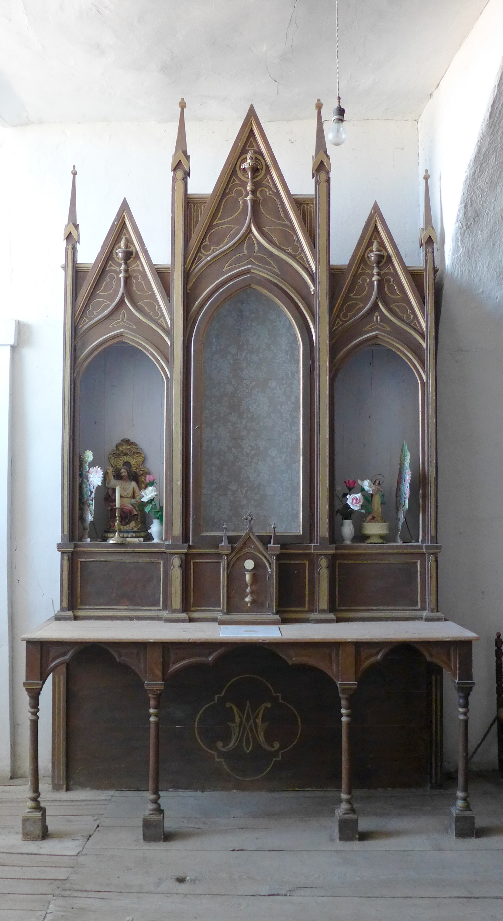 Se encuentra sin ningún tipo de uso, en el coro, a pesar de conservar el ara.