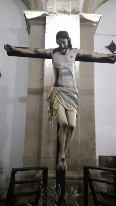 Esta imagen de Cristo yacente es la que ocupa la ya referida urna y la hornacina central del retablo del Cristo Yacente. Como tantos otros, ha sido considerado como de escuela castellana y elaborado en el siglo XVII, pero no parece descabellado pensar que se hiciera o muy a finales de dicha centuria o a comienzos de la siguiente. Es una obra correcta, con una anatomía bastante elemental y un paño de pureza amplio y lleno de generosos pliegues, eso sí el habitual nudo se ha sustituido por una especie de vuelta en la tela efectuada en la cadera derecha. Dado el carácter articulado de los brazos, estos se disponen una marcada línea horizontal, con los dedos parcialmente recogidos. El estudio de la cabeza resulta interesante, con larga melena partida al medio que cae sobre los hombros, barba de finos mechones y rostro de aspecto dolorido, gestos acentuado por la posición de las cejas, los ojos entornados y la boca entreabierta.