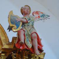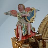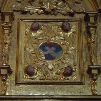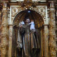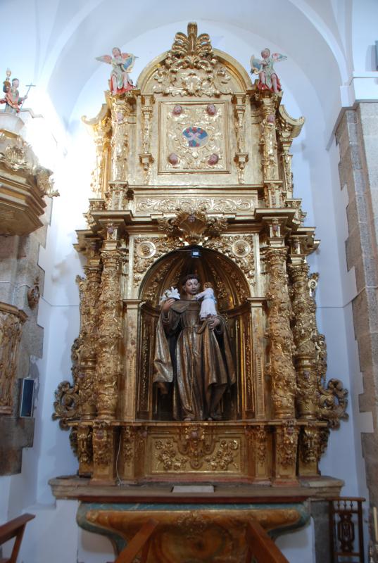 Tipológicamente poco innova este retablo frente a los del resto del templo. Es por tanto una máquina barroca, con ciertos ornatos del mundo rococó, organizada en banco, cuerpo central con hornacina para imagen de bulto y un ático sobredimensionado que adquiere la potencia de un segundo cuerpo realmente. El piso principal lleva como sopores, flanqueado la referida hornacina, dos pares de columnas salomónicas con sus correspondientes traspilares. El piso superior lleva estípites y columnas con el fuste cuajado de exornos rococós, que flanquean un panel rectangular con un relieve de carácter simbólicos. Por último la coronación del retablo, que incide en los perfiles movidos y el recargamiento decorativo, acoge una pareja de angelitos.