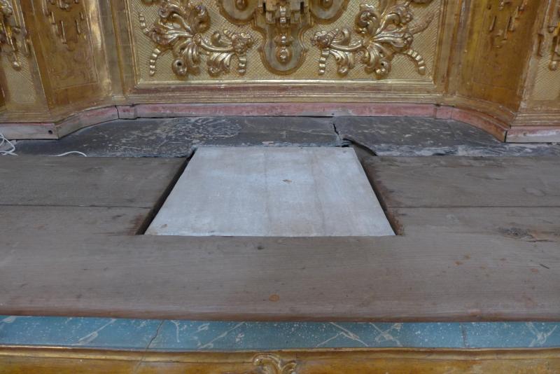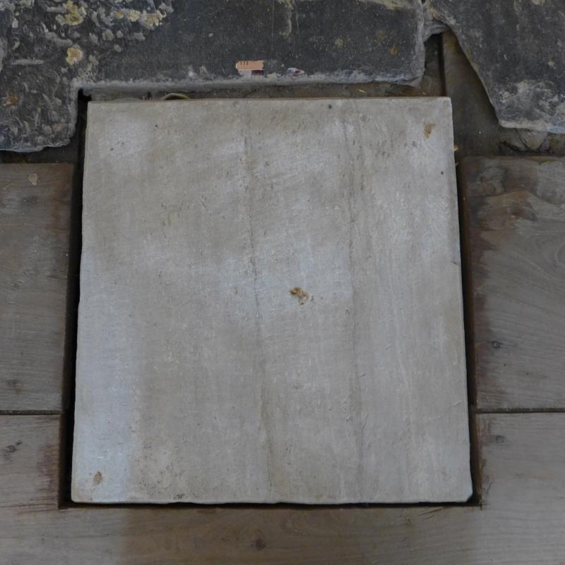 Pieza cuadrangular de mármol dispuesta sobre la mesa del altar de San Antonio. Se muestra completamente lisa, con sus bordes rectos y carece de sellos episcopales y sepulcro.